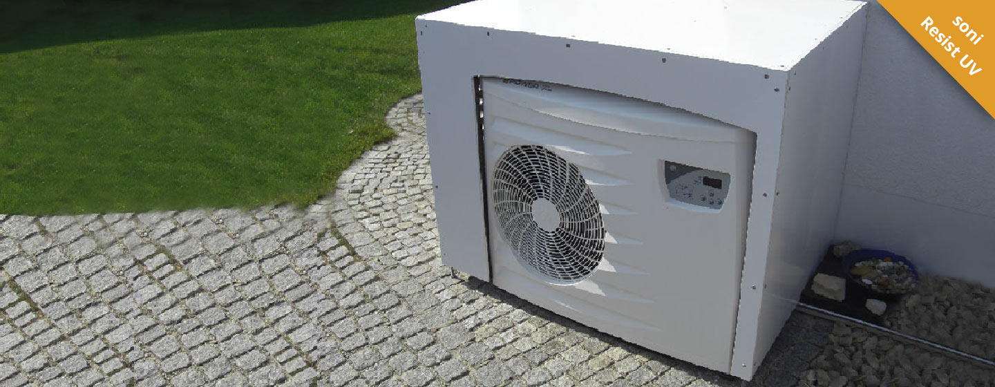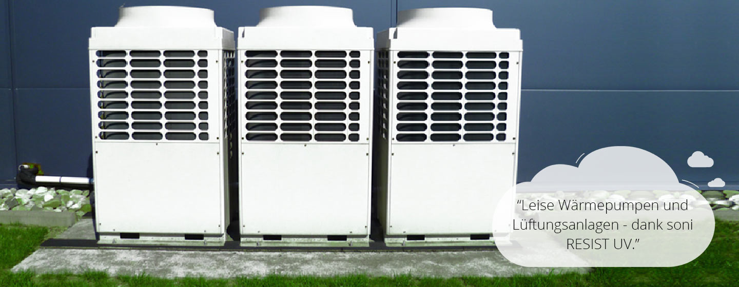 Um weiterhin ein gutes nachbarschaftliches Verhältnis wahren zu können, raten wir Ihnen zur Schalldämmung Ihrer Wärmepumpe. Hierzu empfiehlt es sich, ein Gehäuse aus imprägniertem Holz oder UV-beständigem Kunststoff zu bauen mit einem Abstand von ca. 30 cm zur Lärmquelle (u. a. wegen der Wärmeentwicklung). Dieses Gehäuse kleiden Sie innen mit unserem Schallschutzprodukt soni RESIST UV aus. Dieses Produkt bietet den großen Vorteil, dass es sowohl schalldämmende, als auch schalldämpfende Eigenschaften hat und somit zu einer sehr guten Lärmreduzierung führt. Zudem ist es UV-stabil und witterungsbeständig.
