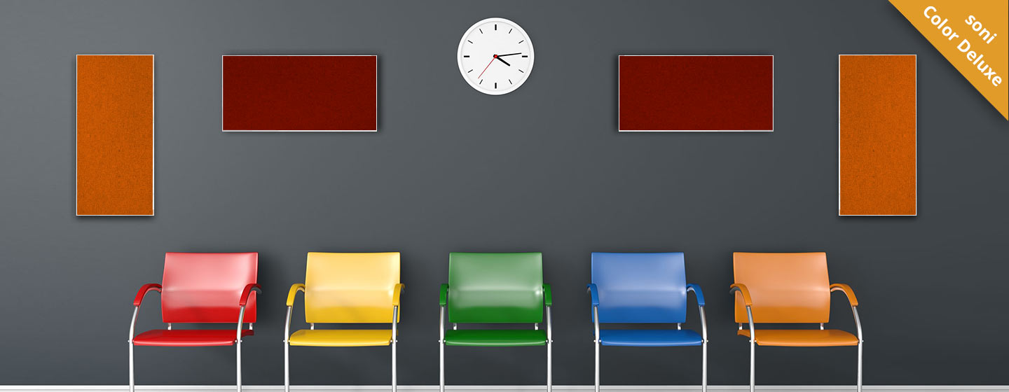 Wenn es um die verbesserte Raumakustik Ihres Wartebereichs geht, bieten wir Ihnen mit 50 Jahren Erfahrung in der Entwicklung von Schallabsorbern hochwertige und effektive Produkte mit einem Schallschutz nach DIN ISO 9001.