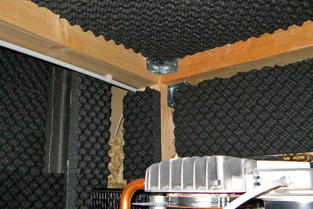 Die Auskleidung der Decke mit dem schalldämpfenden Akustik-Noppenschaumstoffes soni WAVE reduzierte den Schallpegel im Kompressorraum erheblich und damit auch die Schallübertragung in die darüberliegende Wohnung.