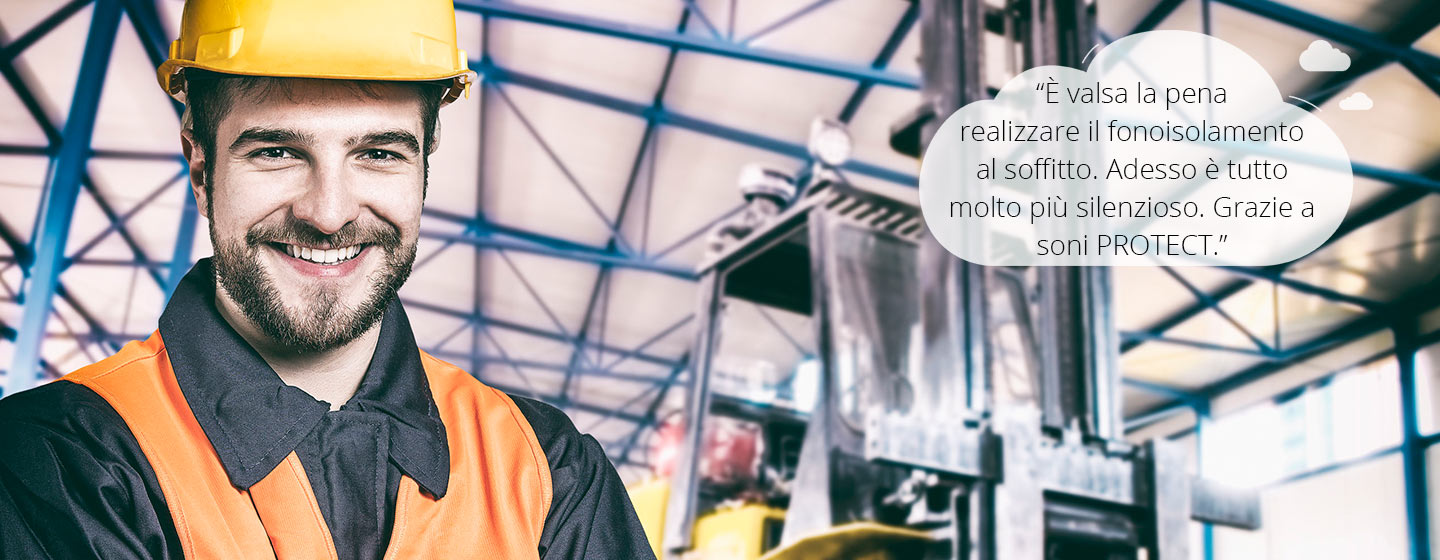 I nostri speciali prodotti acustici per capannoni industriali e officine creano un’atmosfera lavorativa piacevole, motivante e e sicura. Ci sono numerose possibilità: da un lato è possibile delimitare acusticamente le aree in cui operano macchine rumorose. Dall’altro, i prodotti fonoisolanti applicati a soffitti e pareti riducono la riflessione del suono. Ciò dà luogo a riverberi più corti e quindi a un livello di pressione acustica ridotto che diventa quindi sopportabile.